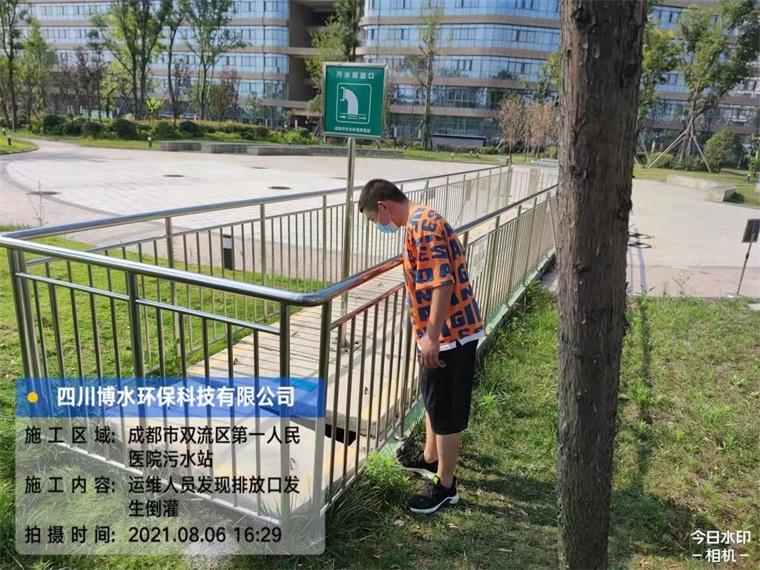1、運維人員在日常的巡檢中發現污水處理站排放口發生倒灌現象
