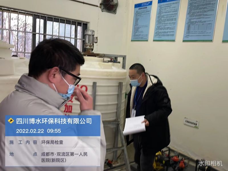 2022年2月21日-23日,環保局臨檢四川博水環保運維項目:雙流區第一人民醫院(新院區)!