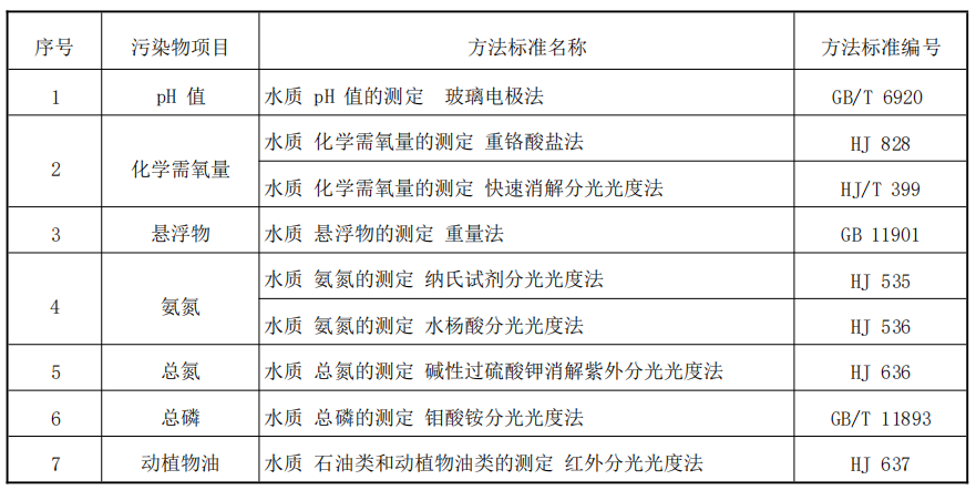 6.4 水污染物監測分析方法按表 3 所列方法標準或國家認定的其他等效方法標準執行。本標準發布實施后,有新發布的國家環境監測分析方法標準,其方法適用范圍相同的,也適用于本標準對應污染物的測定。