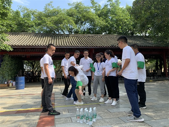天公作美,晨風(fēng)送爽,懷著激動(dòng)、期盼的心情,經(jīng)過(guò)3個(gè)小時(shí)的快樂(lè)旅途,參加團(tuán)建員工順利抵達(dá)戶外基地。活動(dòng)開始前,為進(jìn)一步增強(qiáng)員工間交流,員工間打破部門限制,組建2支隊(duì)伍,開展充滿挑戰(zhàn)、極具趣味的活動(dòng)。每個(gè)隊(duì)選隊(duì)長(zhǎng)、起隊(duì)名、制隊(duì)微、喊口號(hào),積極準(zhǔn)備,也暗中較勁,現(xiàn)場(chǎng)充滿了歡聲笑語(yǔ)。活動(dòng)中,各小組成員密切配合,展示了高效一致的執(zhí)行力和協(xié)助配合的團(tuán)隊(duì)精神,現(xiàn)場(chǎng)氣氛活躍歡快。