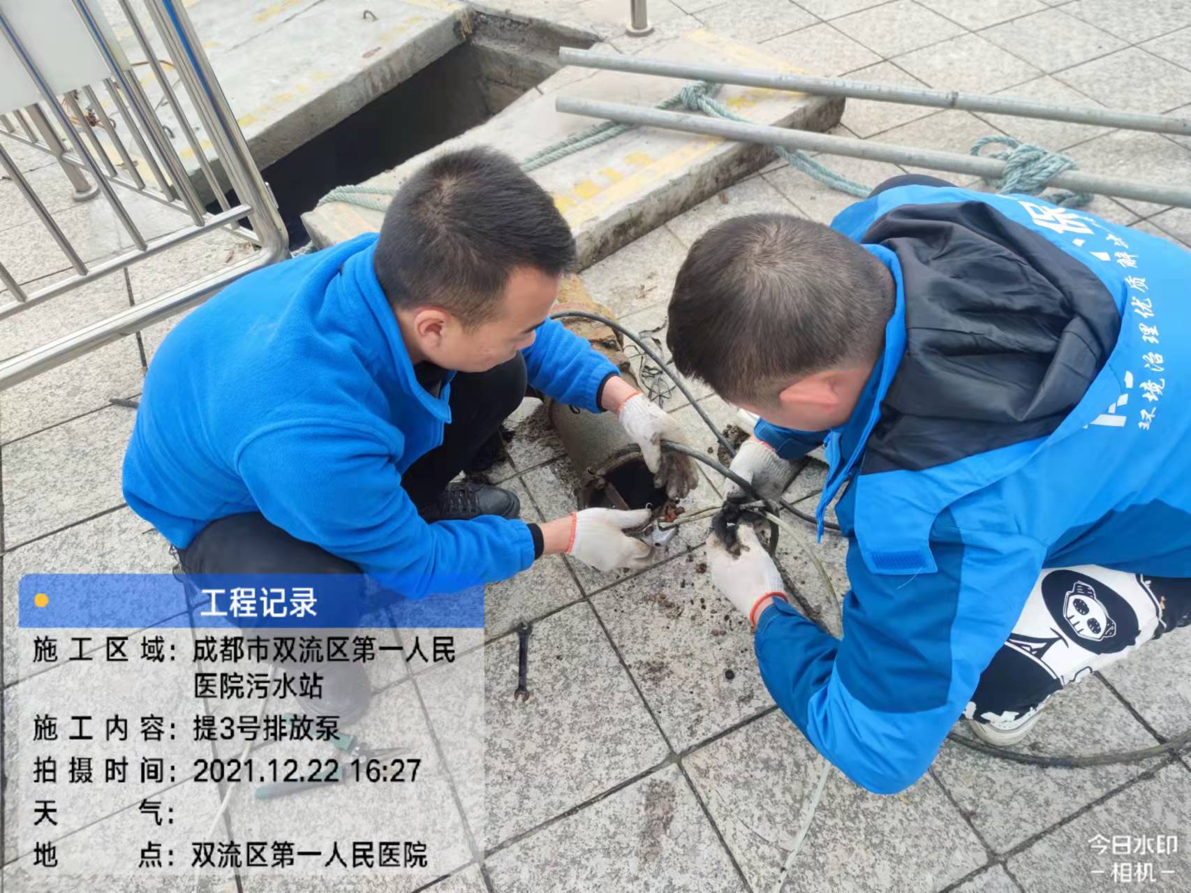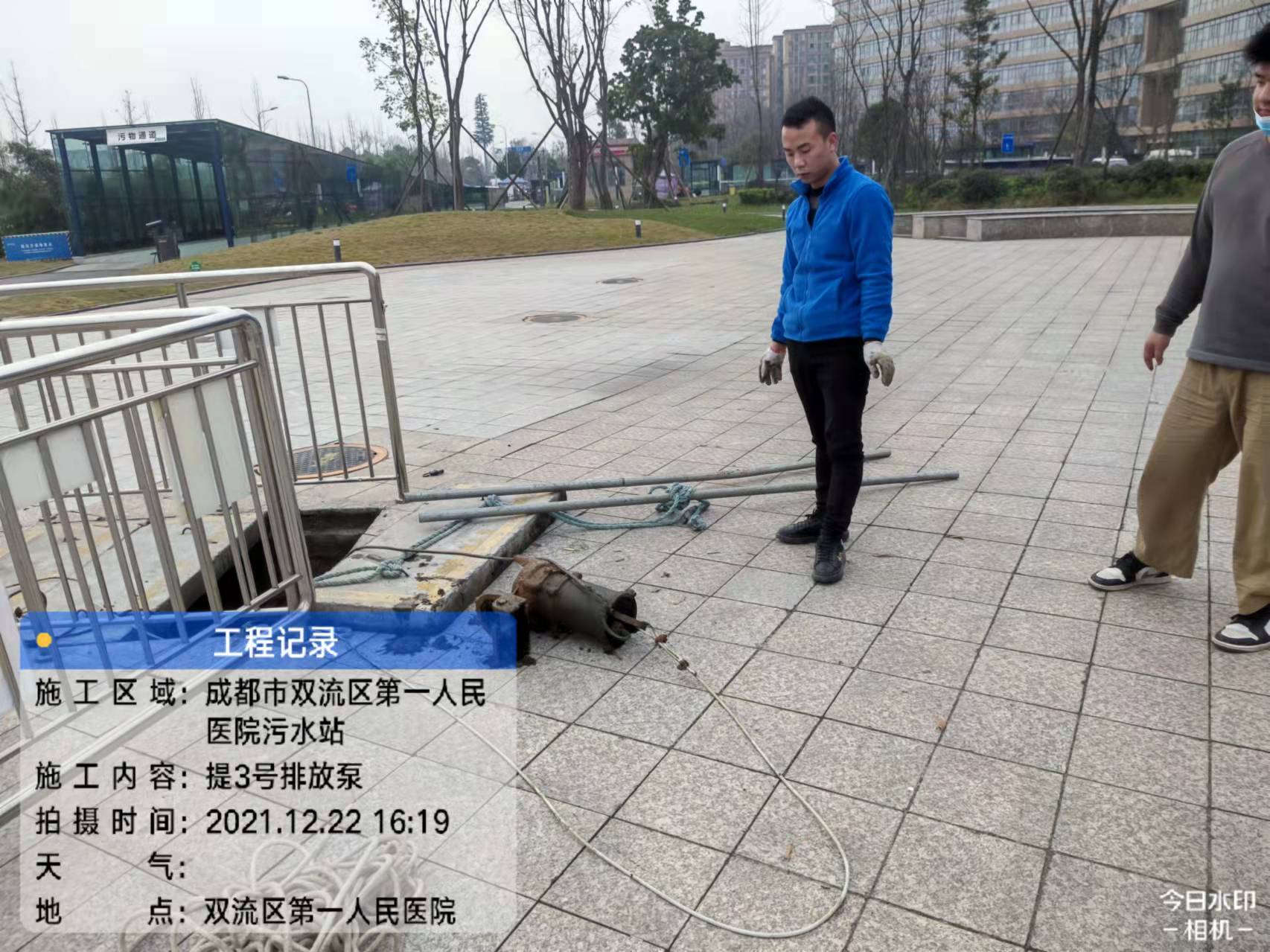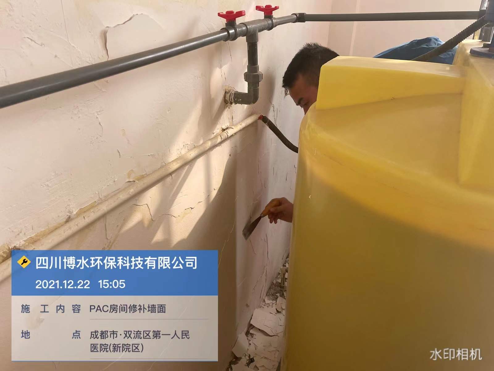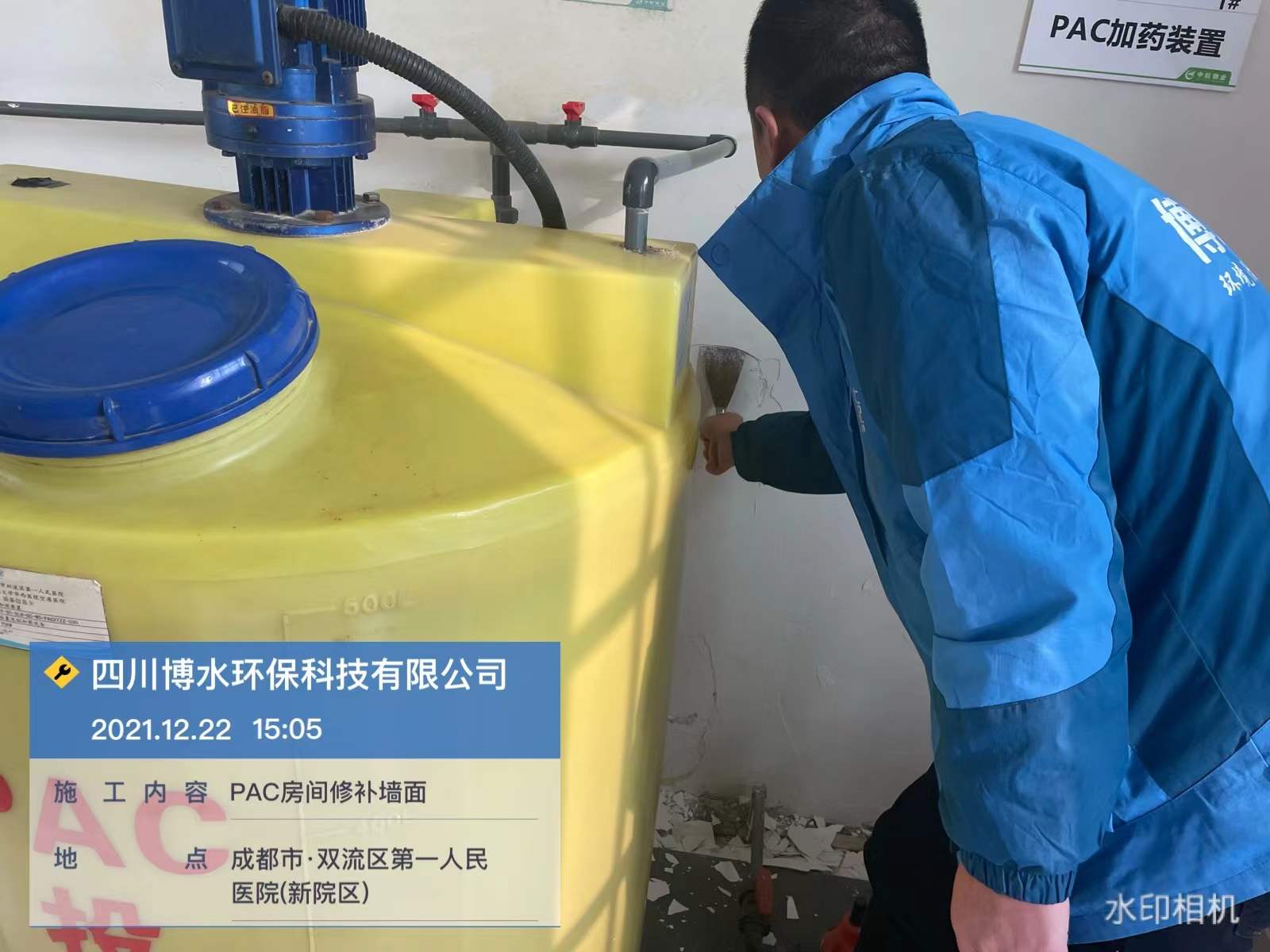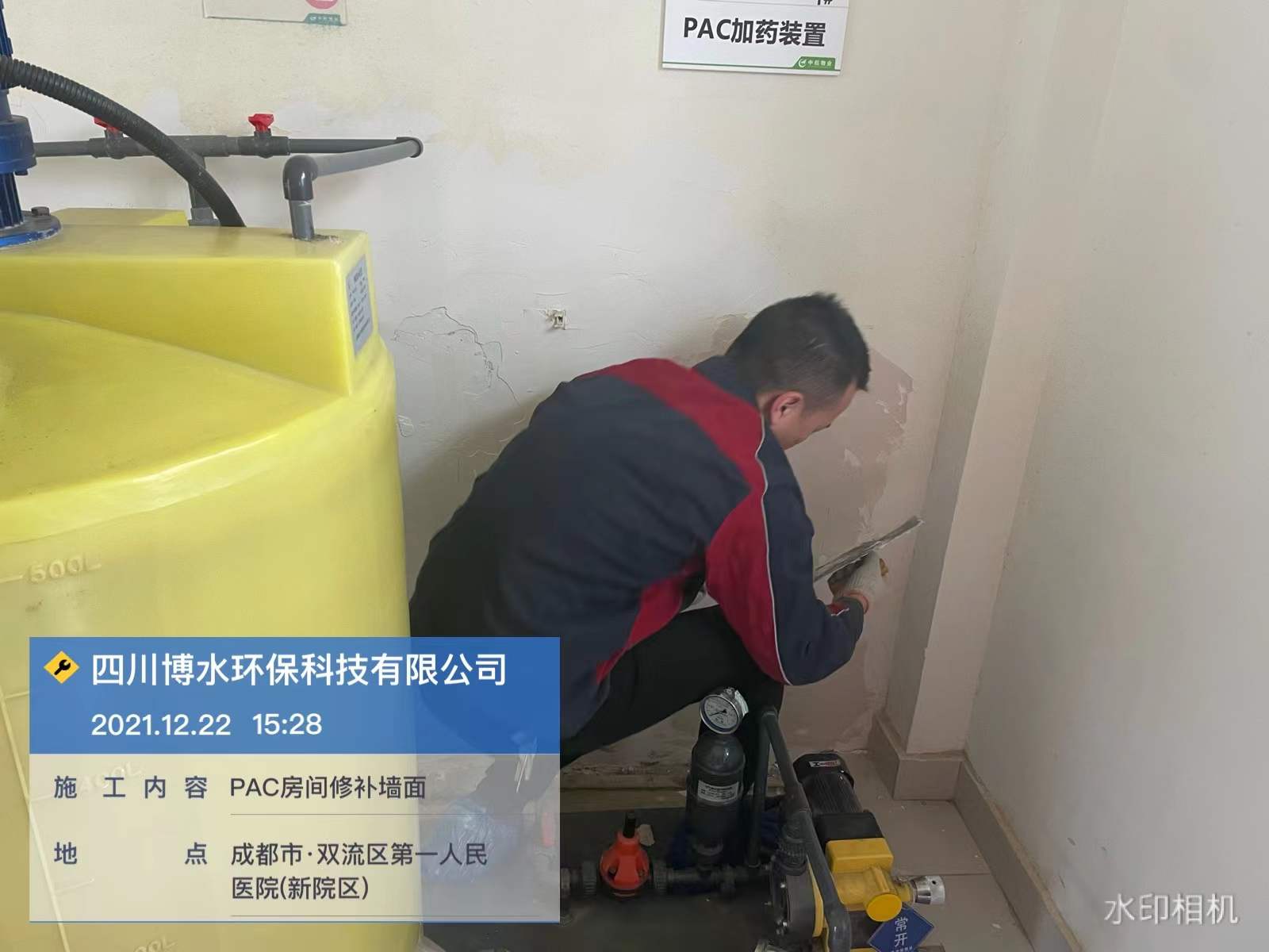 成都雙流第一人民醫院污水站維保-修補PAC房間墻面-排放泵并清洗