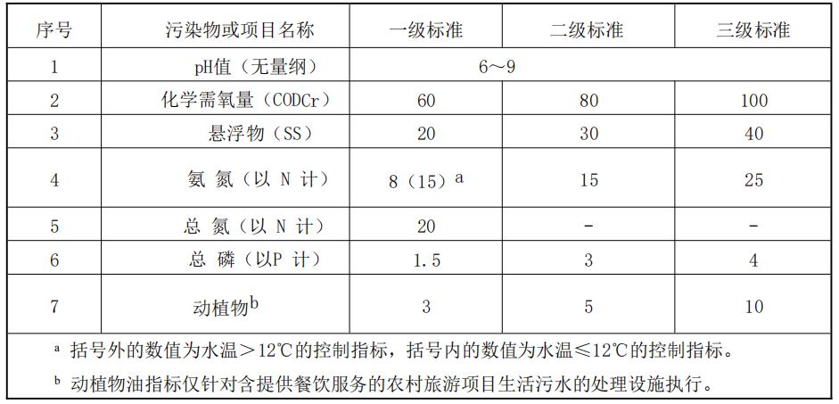 a) 新(改、擴)建農村生活污水處理設施的水污染物排放,自本標準實施之日起執行本標準;現有農村生活污水處理設施水污染物排放標準寬于本標準要求的,自本標準實施六個月起執行本標準;