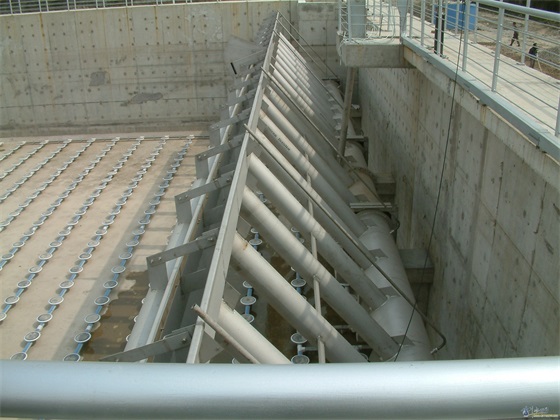 ⑧ 集水槽進(jìn)水口裝有自動(dòng)擋泥板,在池內(nèi)曝氣時(shí)能有效的隔離污泥。