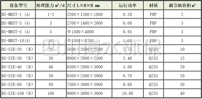 三 微動力農村污水處理設備產品規格型號表